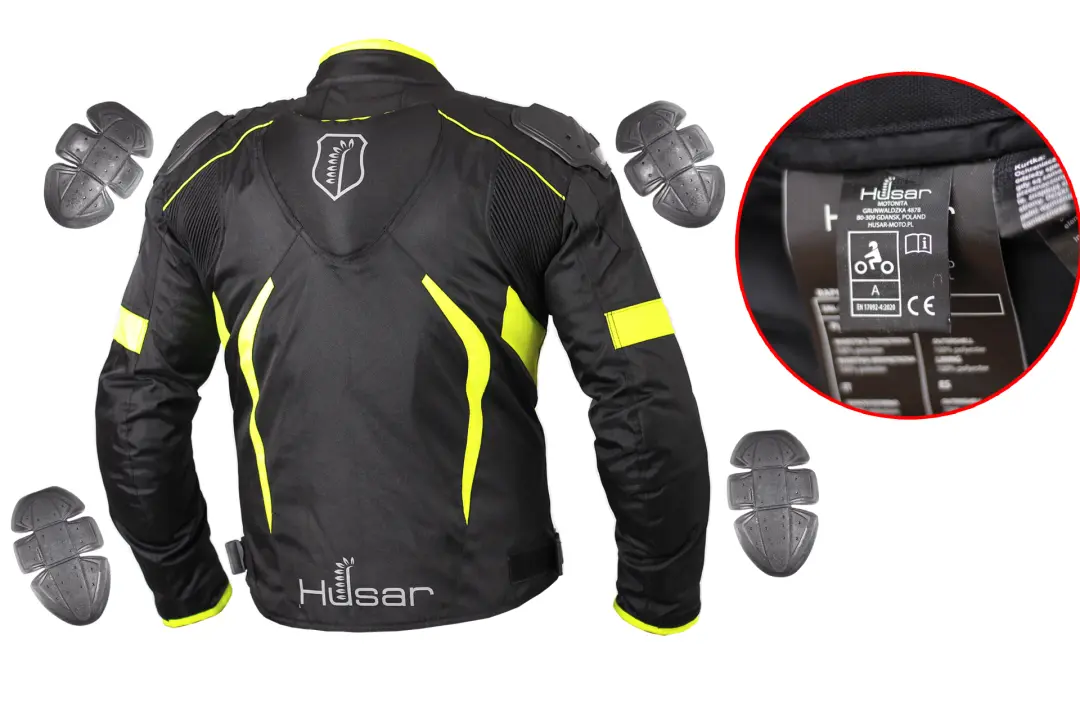 Kurtka motocyklowa tekstylna HUSAR RAPID GP FLUO — sportowa kurtka z garbem i podpinką